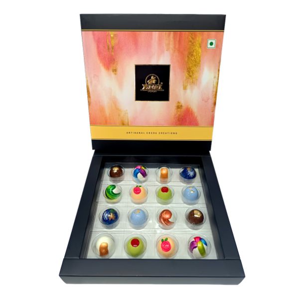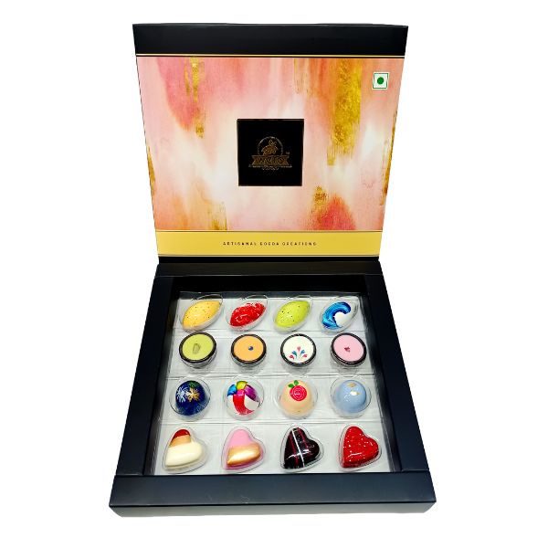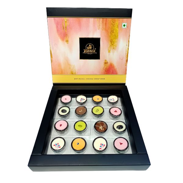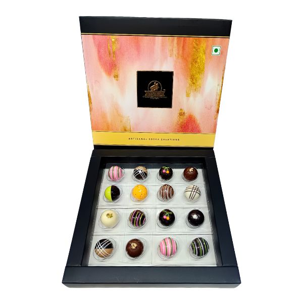 Discover pure bliss in this charming square box, packed with 16 of our signature chocolates — each bite crafted to melt in your mouth and warm your heart
